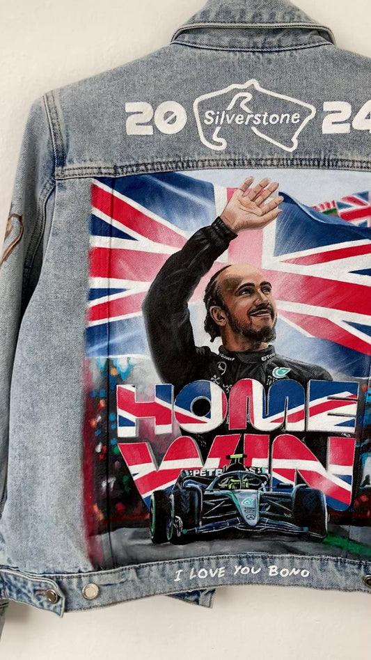 Hand-Painted Denim Jacket – Racing-Inspired Art Piece, Grand Prix Inspired Personalized Jean Jacket