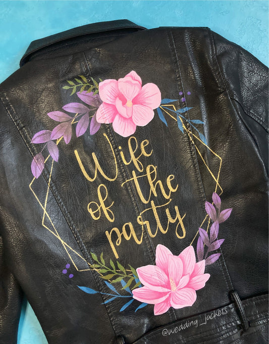 Wedding jacket, bride faux leather jacket, just married jacket.