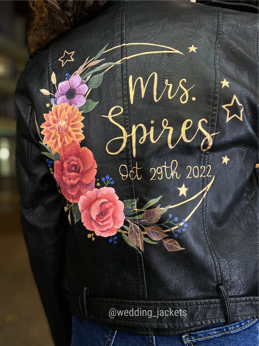 Skull bride jacket, painted leather bridal jacket, wedding leather jacket for bride.