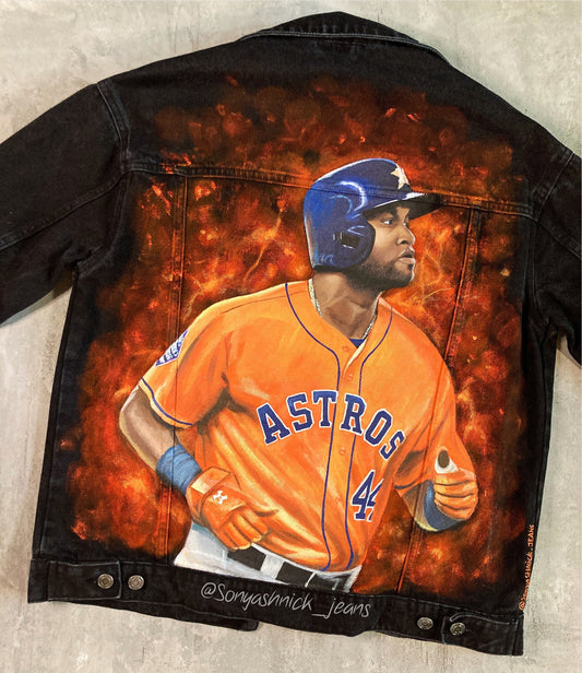 Hand painted denim jacket football player