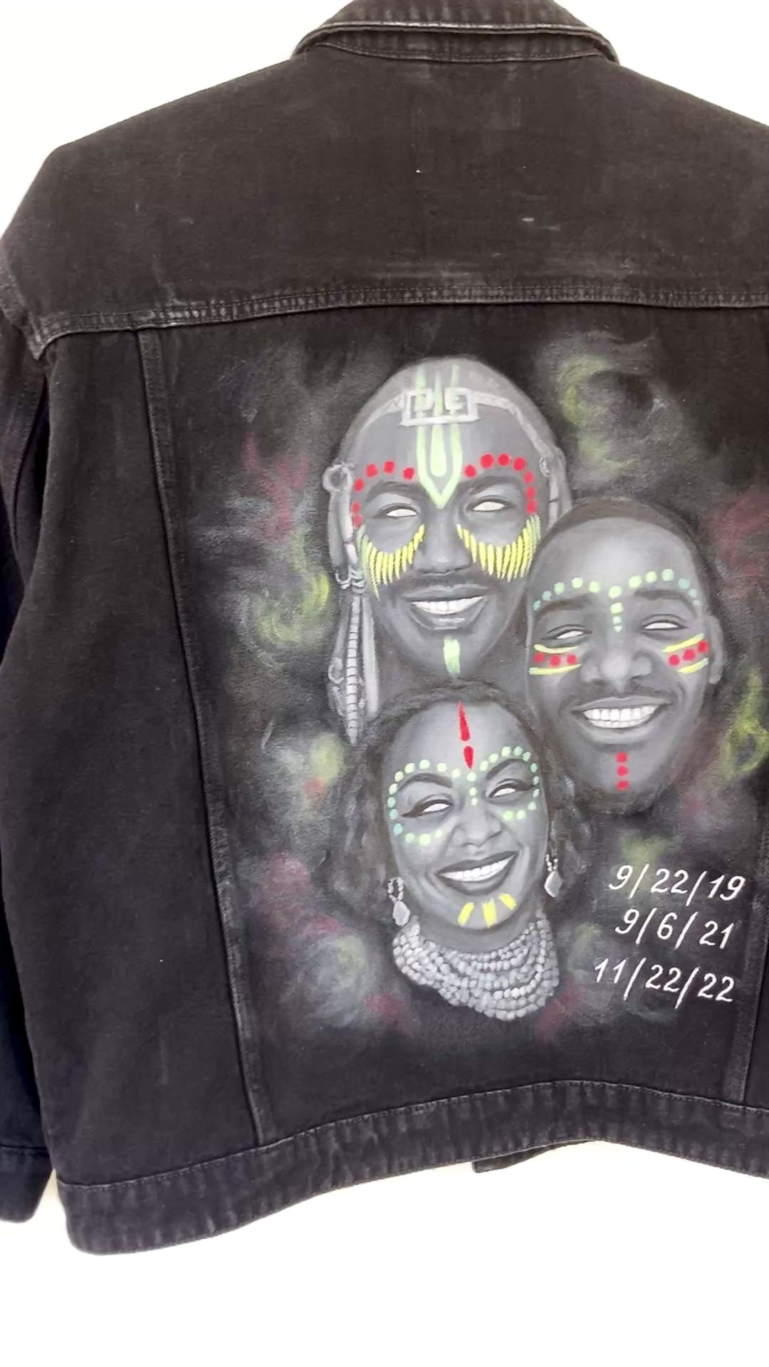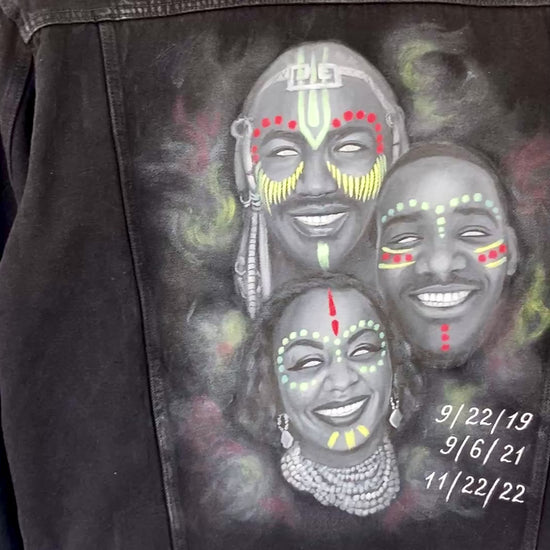 Custom portrait painted on denim jacket can be a mother memorial gift. In loving memory picture can be painted on man's denim jacket or woman's denim jacket. You can order your handpainted jacket with a picture of your loved one.